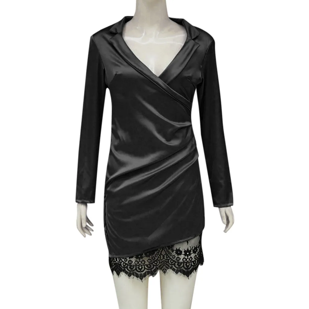 Feitong модное платье для женщин с v-образным вырезом, кружевное лоскутное сексуальное облегающее коктейльное платье для выпускного вечера, летнее платье для женщин Dames Jurken
