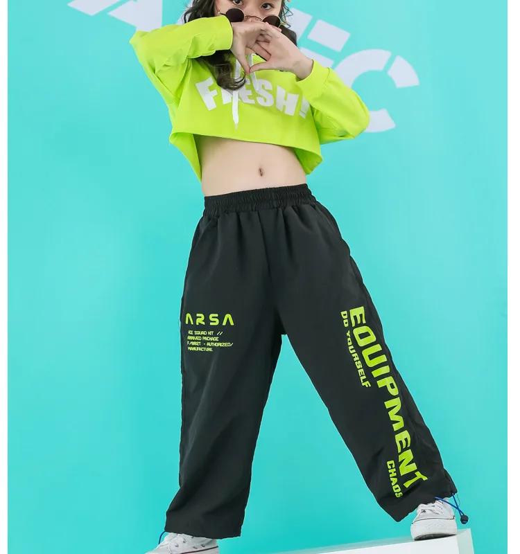 Детская одежда с капюшоном в стиле хип-хоп Повседневная футболка Топы, штаны для бега для девочек и мальчиков, танцевальный костюм Одежда для бальных танцев, Одежда для танцев