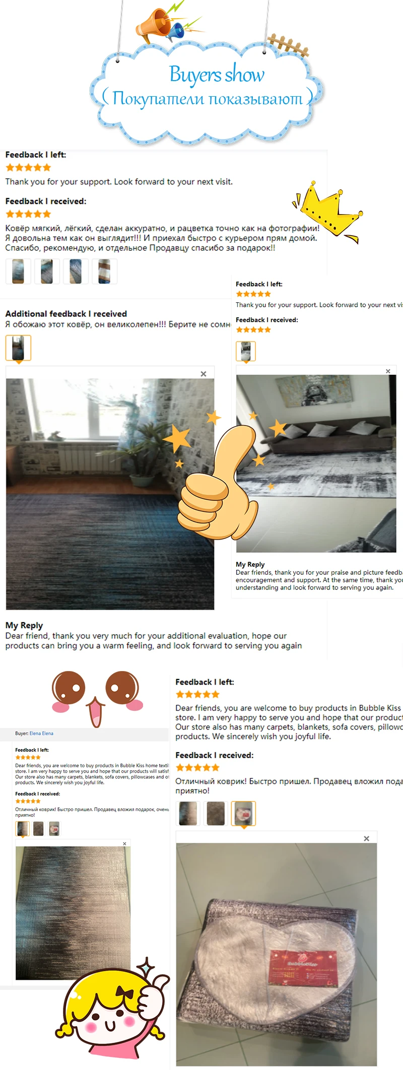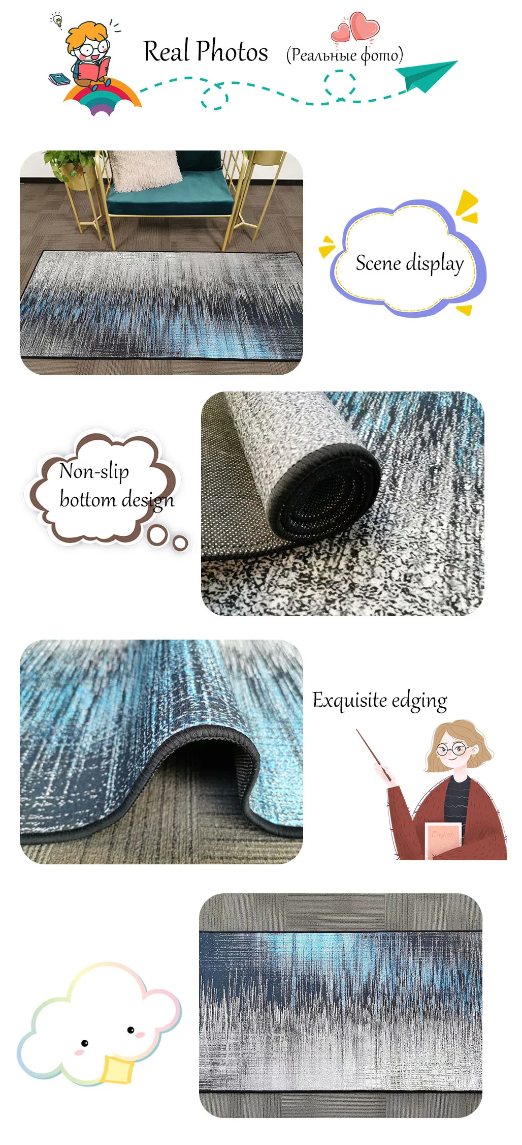 В: есть ли у вас реальные фотографии? Могу ли я посмотреть? О: Да. У нас есть. Я отправлю вам Настоящее фото позже. В: это противоскользящее изделие? О: Да, нижняя часть ковра-Нескользящая пластиковая подошва. В: если вам это не нравится, как вернуть товар? О: мы вернем покупателям деньги, если покупатели возвращают товары в течение 15 дней с момента получения покупателями товаров по любой причине. Тем не менее, покупатели должны нести стоимость обратной доставки и убедиться, что возвращенные товары находятся в их первоначальном состоянии. В: как чистить ковер? О: небольшие ковры можно стирать в стиральной машине или стирать вручную. Большие ковры рекомендуется чистить с помощью пылесоса. Вопрос: Что делать, если вы хотите большой ковер? О: пожалуйста, свяжитесь с нашей службой поддержки клиентов напрямую. В: какая логистика используется для доставки? О: товары отправляются стандартной доставкой AliExpress, авиапочтой Китая, Премиум доставкой AliExpress, ePacket, доставляются в большинство стран в течение 15-35 рабочих дней. Время доставки зависит от пункта назначения и других факторов, это может занять до 60 рабочих дней. Если вы хотите получить товар быстрее, пожалуйста, свяжитесь с нами, чтобы оплатить дополнительные перевозки, мы можем предложить вам следующие более быстрые и дешевые способы доставки: UPS , DHL , Fedex , TNT , DEPX , EMS. С помощью этих способов вы можете получить товар в течение 5-7 рабочих дней.