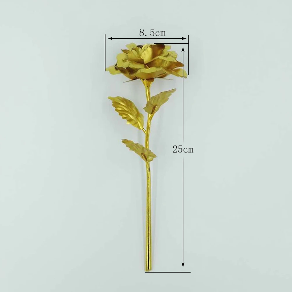 Размер: длина гвоздики из золотой фольги 25 см, диаметр цветка 8,5 см, длина верхнего листа 7 см ширина 0,7 см, длина нижнего листа 8,5 см ширина 0,7 см