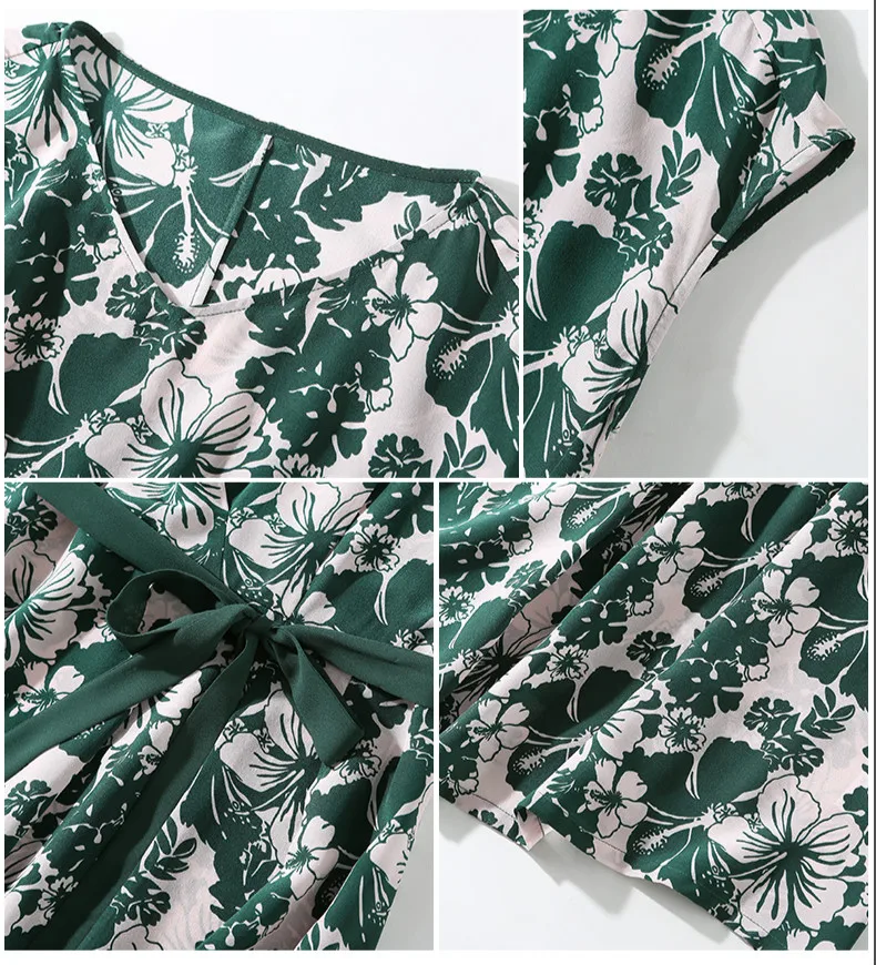 Женское шелковое платье винтажное зеленое средней длины с цветочным принтом