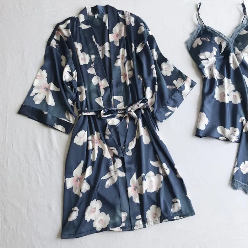 Ткань: шифон, атлас Комплект из 2 предметов: халат, ночная рубашка, с парой подушечек на груди.