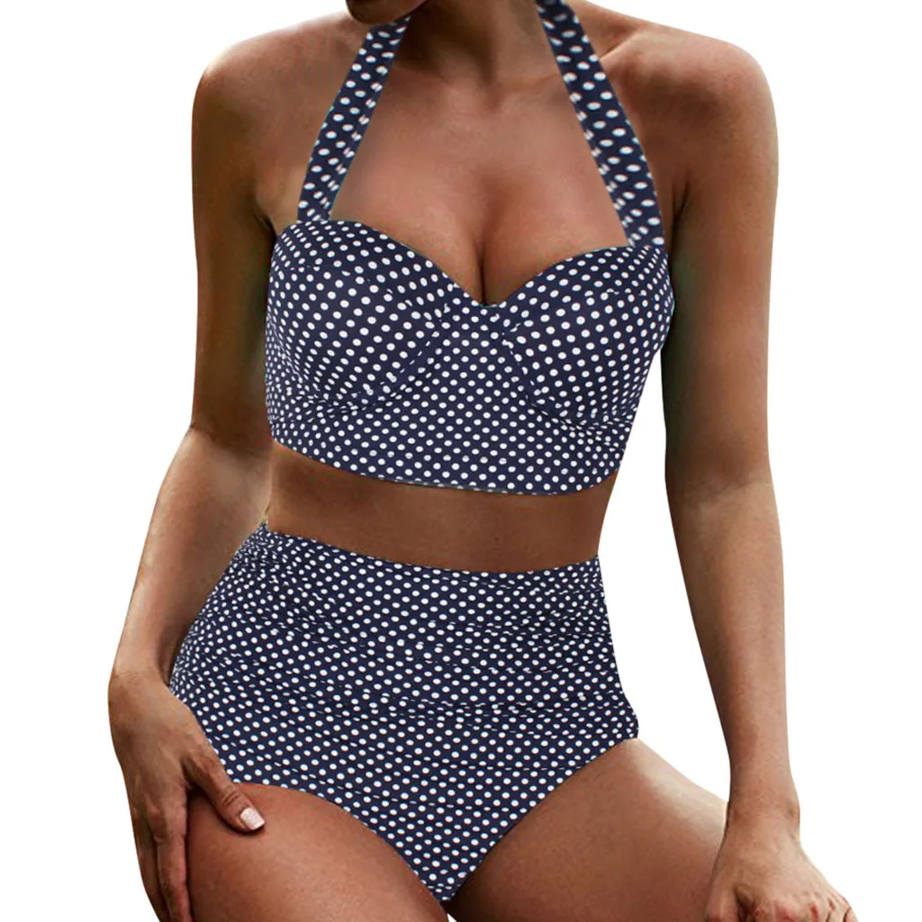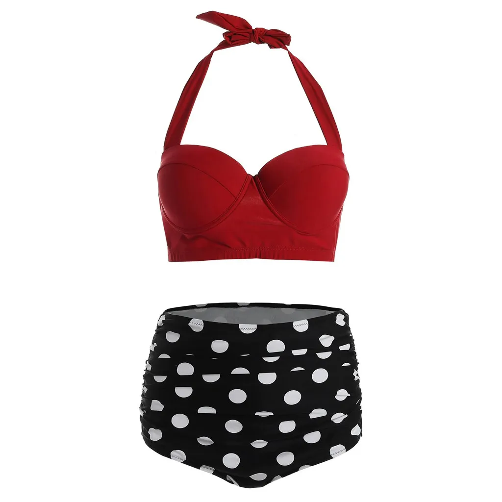 Женский бикини с высокой талией, купальный костюм в стиле ретро, Женский комплект бикини с лямкой на шее, сексуальные купальные костюмы stroje k pielowe damskie
