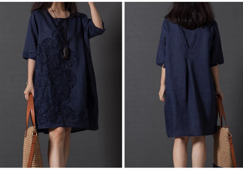 Женское платье миди с вышивкой размера плюс 5XL, свободное однотонное платье с коротким рукавом и круглым вырезом для женщин 2020, летняя женская повседневная одежда