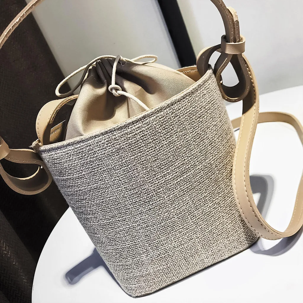 Для женщин Винтаж пляж Соломенная Сумка, мешковина, сумка-ведро, пляжная сумка, сумка-мессенджер