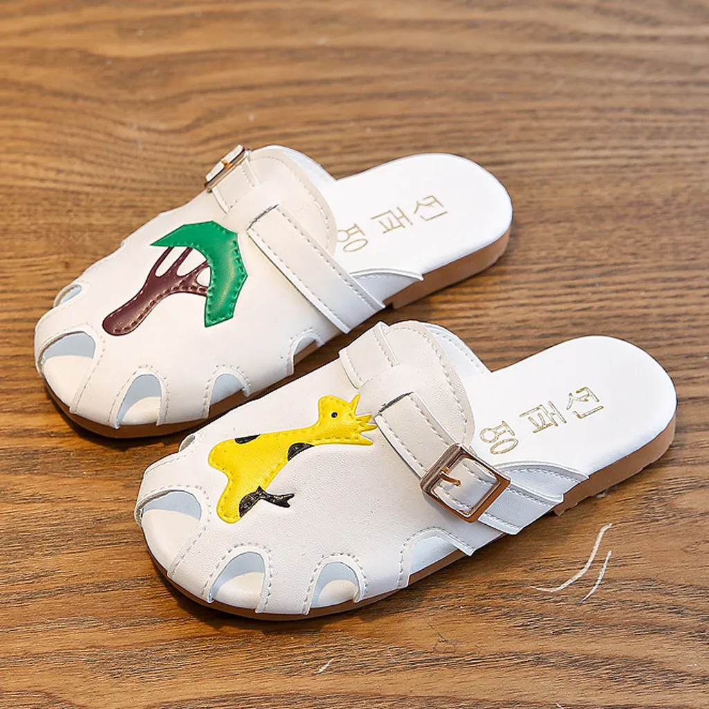 Модные детские летние кожаные тапочки с животными для мальчиков и девочек; повседневные сандалии