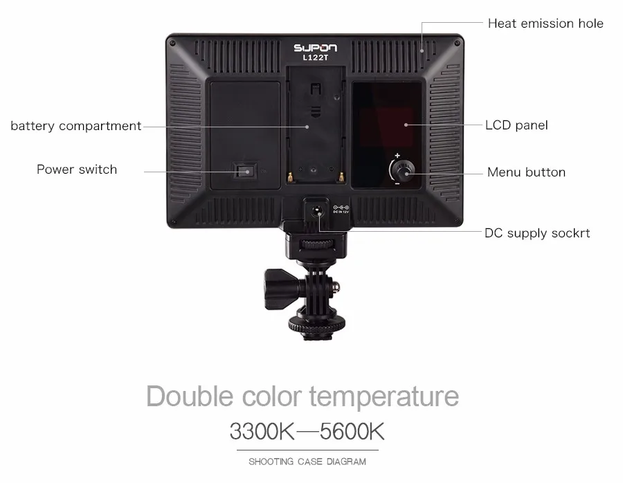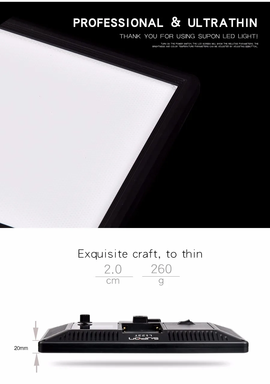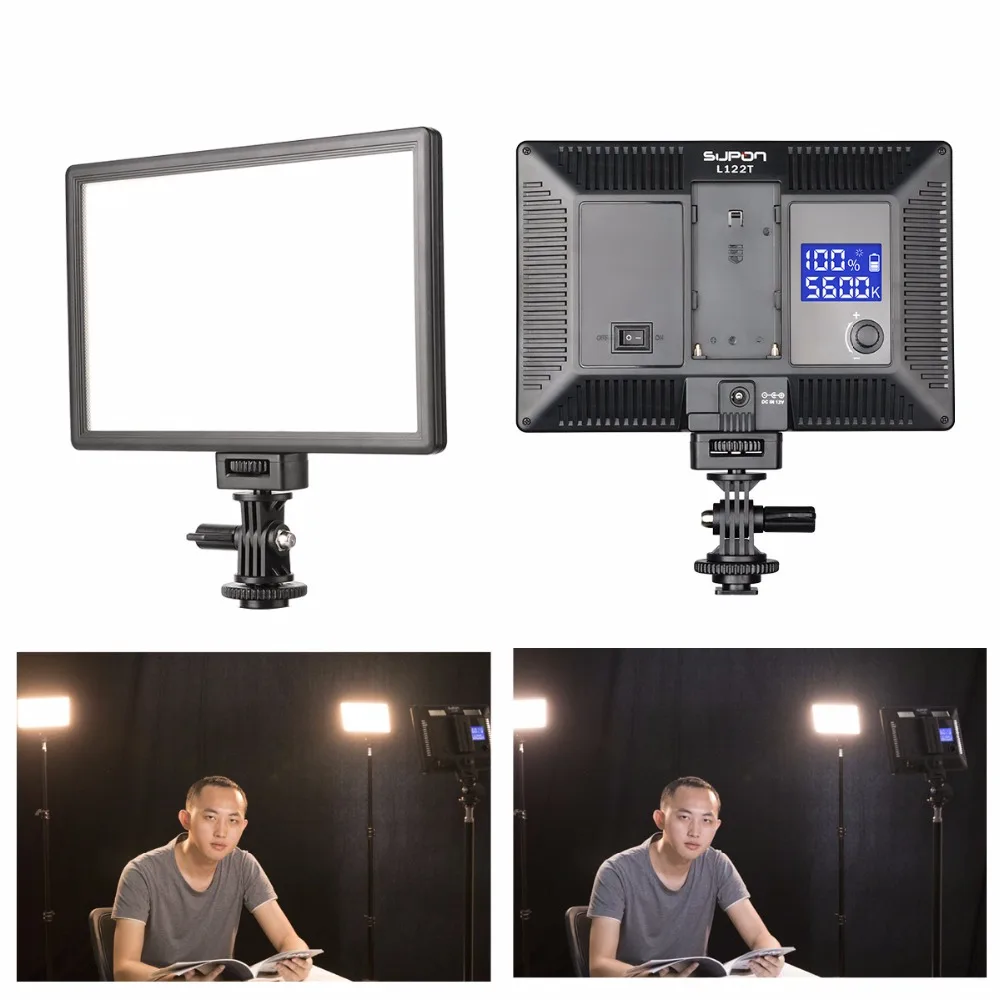 Это видео-освещение серии L122T обеспечивает функциональное и прочное освещение для студийной и мастерской съемки, отлично подходит для макрофотографии, фотостудии и видеозаписи и т. д. Характеристики: Модель: L122T светодиодный светильник Цветовая температура: 3300K ~ 5600K (можно регулировать) Диапазон яркости: 20% ~ 100% (можно регулировать) Макс. Бр герметичность, освещенность: 987LM/0,5 m,810Lux/0,5 m мощность: 15W По-прежнему светильник время: 2,4 h(100% полный, NP-750) Индекс цветопередачи: 95(RA) Входная мощность: Li-battery NP-F550/F750/F960 series,12V/2A,DC005 общий интерфейс (входит в комплект) Размеры: 192x128x30 мм сетка Вес: 260 г