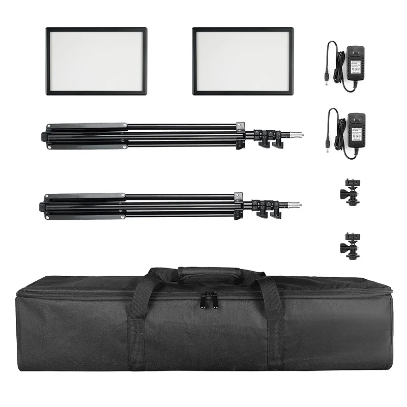 2 * L122T светодиодный светильник 2*2 м светильник-подставка 1 * сумка для переноски 3 * адаптер горячего башмака 2 * адаптер переменного тока 1 * Руководство пользователя 1 * Гарантия