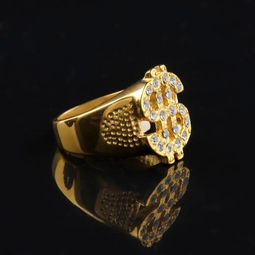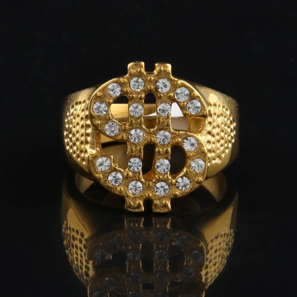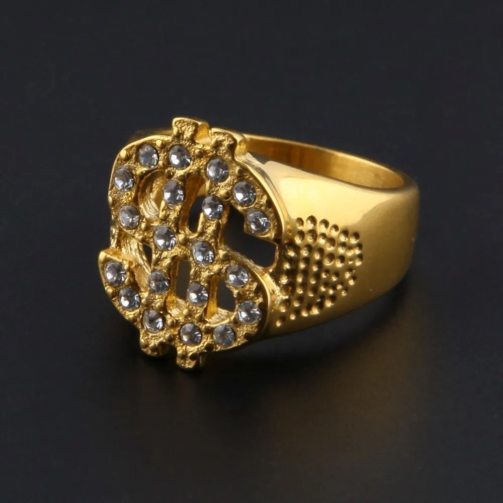 Tbtk доллар кольцо с изображением Знака Доллара из золотистого металла с твердым покрытием украшения с камнями и стразами очаровательные серьги, бижутерия, панк, Для мужчин, кольцо, кольцо из нержавеющей стали большой Размеры коктейльные кольца Мода