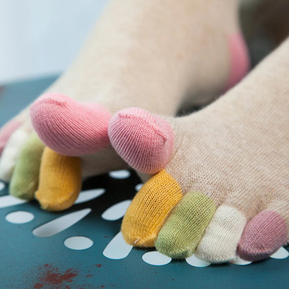 Женские носки calcetines mujer; женские хлопковые Дышащие носки с принтом для девочек; Разноцветные короткие носки с пятью пальцами; T429