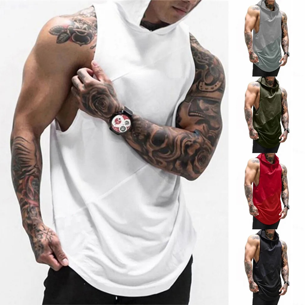Для мужчин спортивный пояс-сетка для фитнеса пряжи лоскутное укороченная Толстовка майки без рукавов Футболка топ, жилет танк