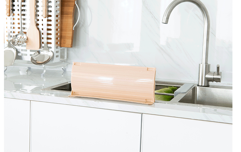 Рядом с кухонной раковиной, брызги воды легко мочить одежду или землю. Этот продукт решает проблему брызг воды и блокирует брызг воды во времени. Это кухонный аксессуар, который очень используется.