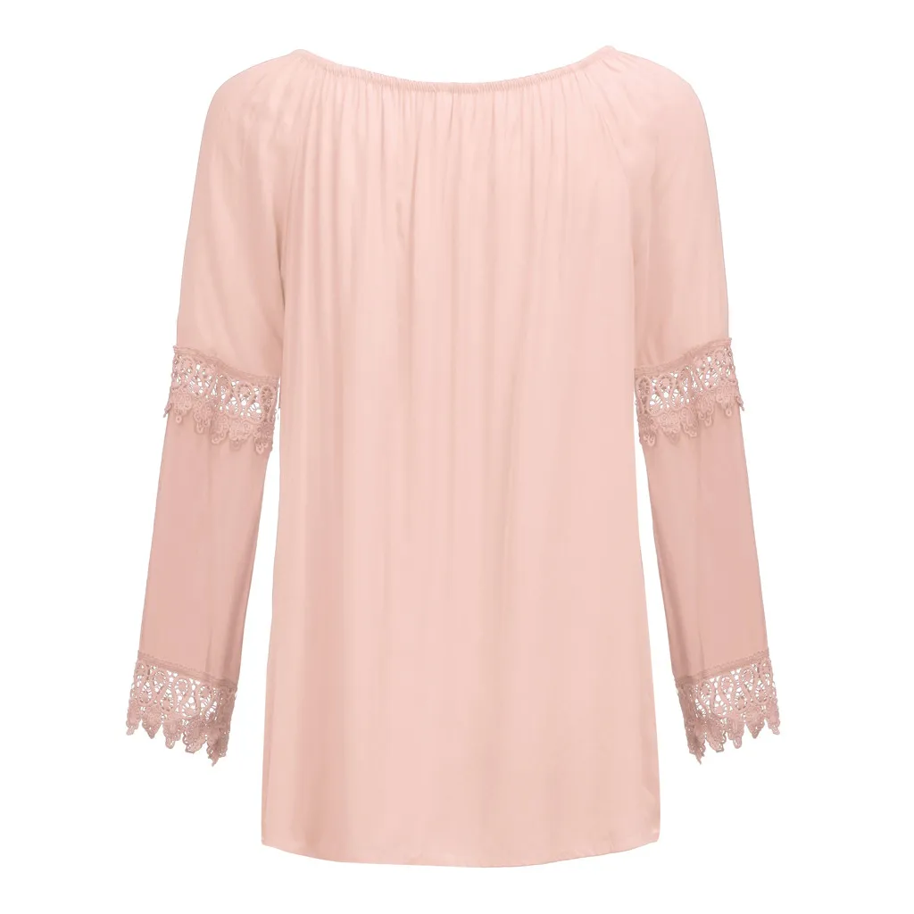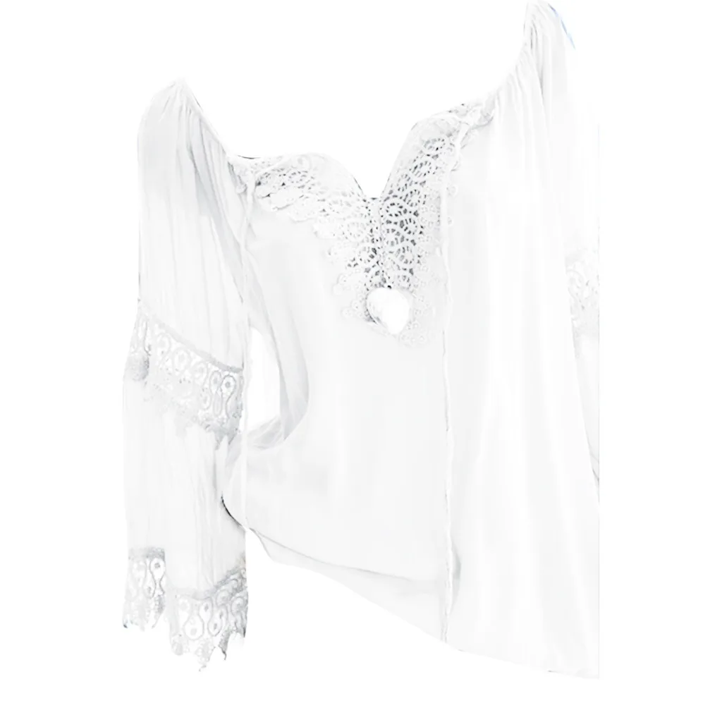 Женская хлопковая льняная кружевная рубашка с открытыми плечами и длинными рукавами