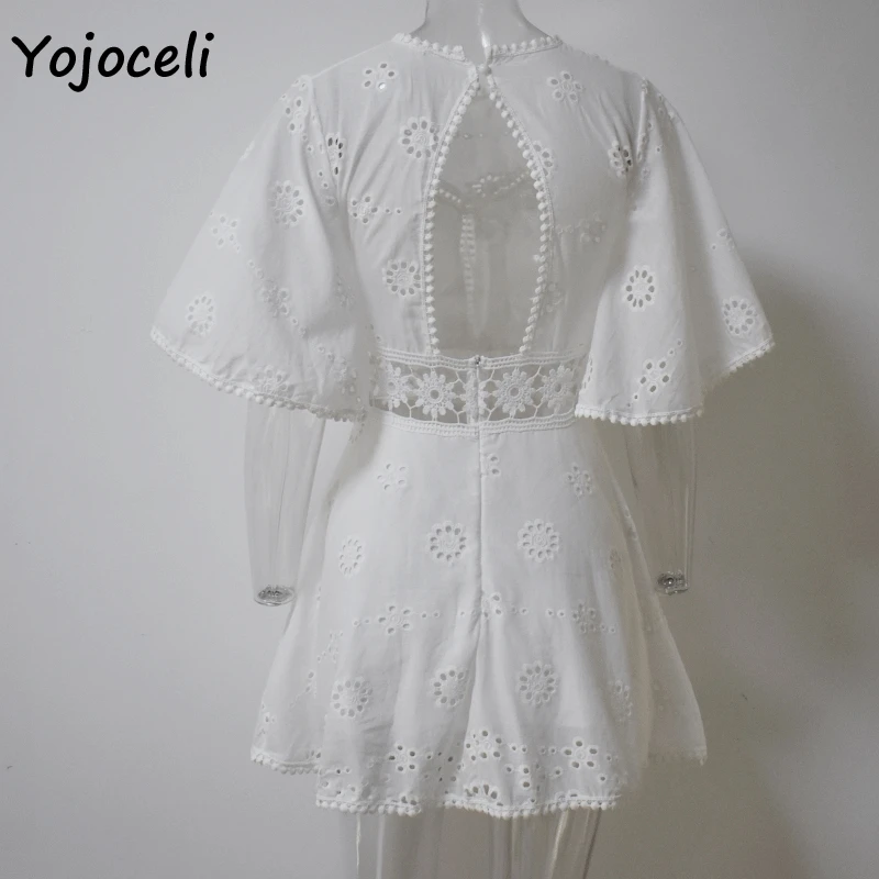 Женское ажурное платье Yojoceli, белое хлопковое мини-платье с расклешенными рукавами и вышивкой, лето 2019