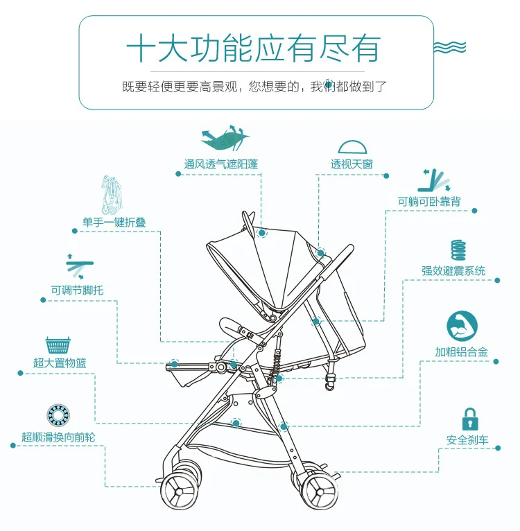 2018 Новые легкие складная детская коляска раскладывается в Лежачую может сидеть