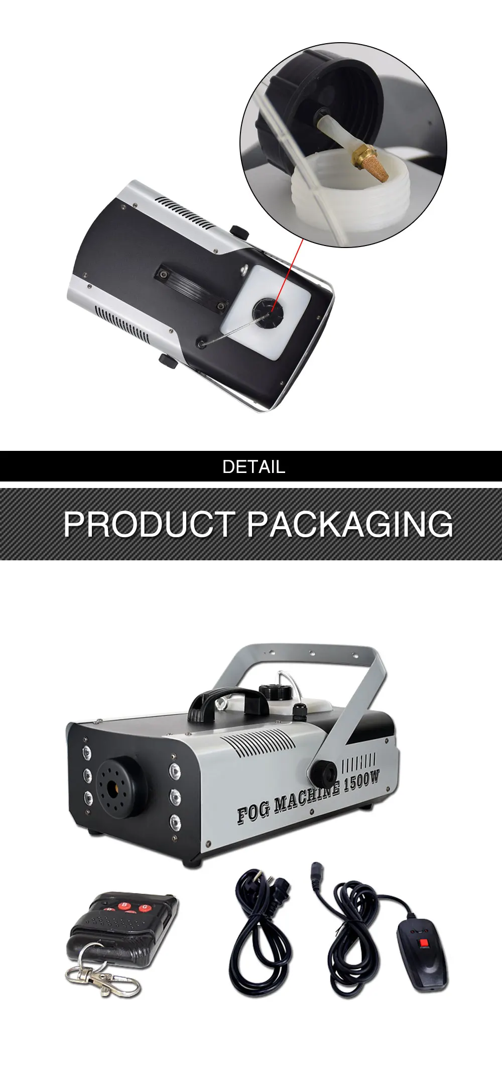 Простота в использовании: Пульт может управлять около 10 метров, встроенный шнур питания и Видимый уровень жидкости, вы всегда можете иметь прямое управление вашей противотуманной машиной
