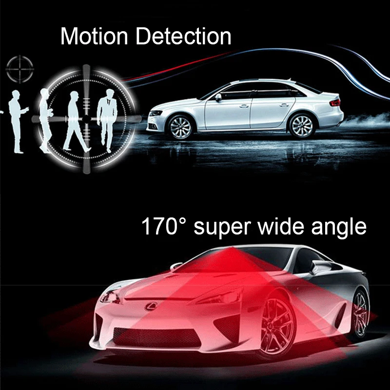 * Обнаружение движения: когда кто-то движется в передней части видеорегистратора/автомобиля, видеорегистратор будет записывать автоматически.