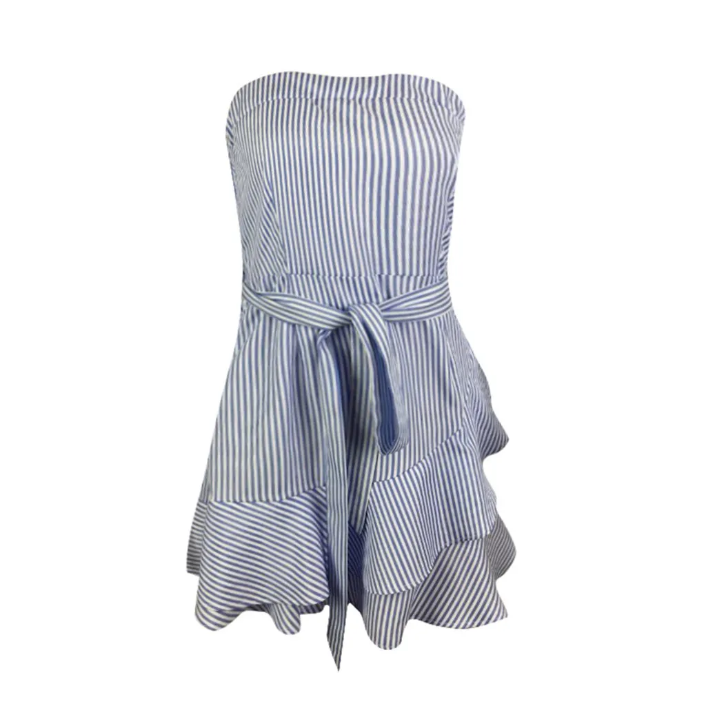 Для женщин в синюю полоску бандо ремень платье с кружевной оборкой