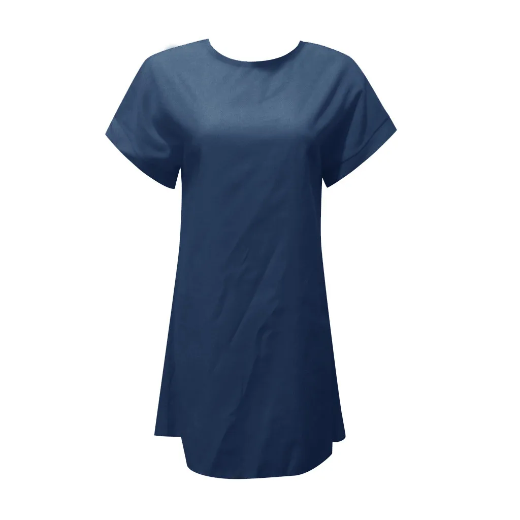 Женское летнее повседневное однотонное льняное платье с коротким рукавом и вырезом лодочкой