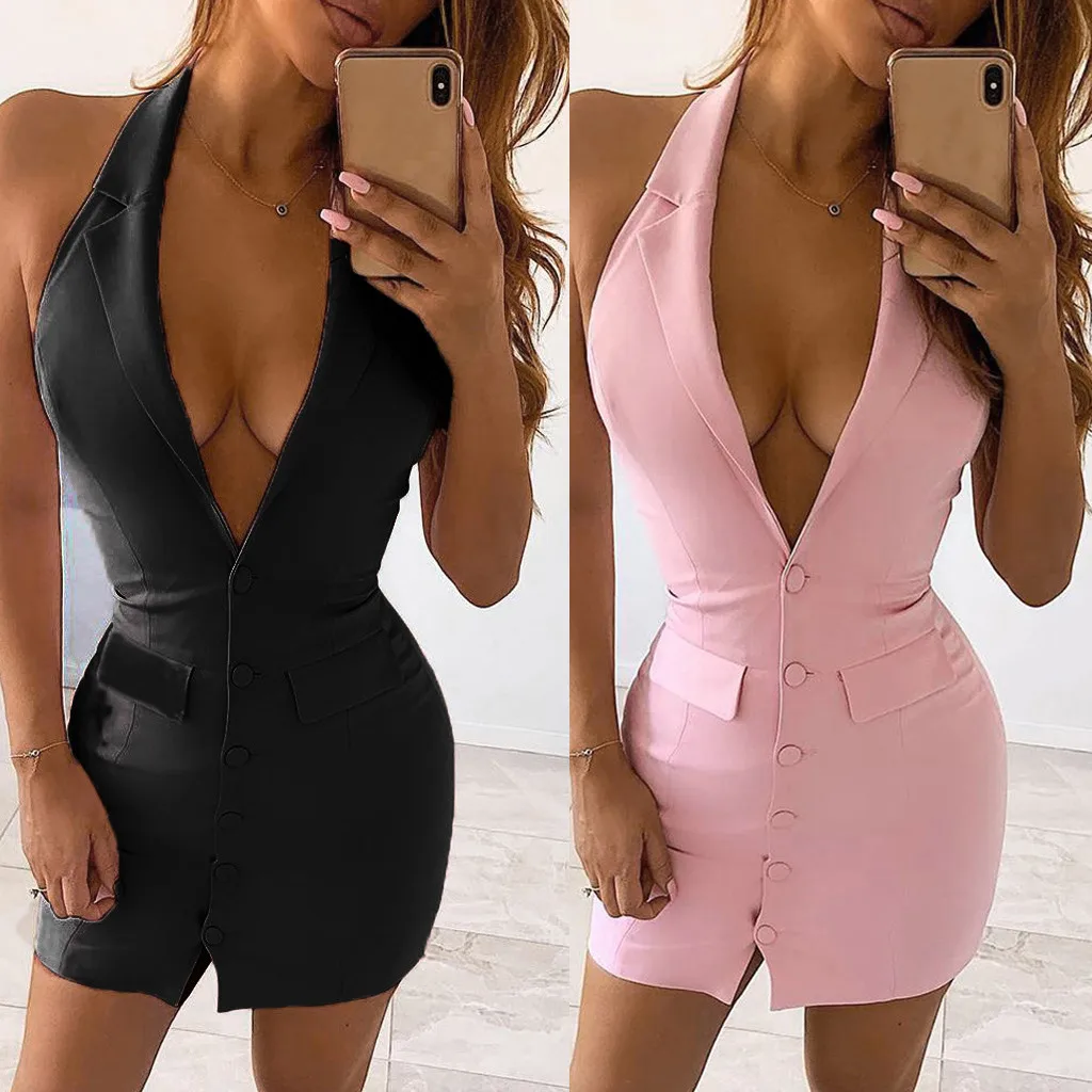Feitong Сексуальная женская летняя блузка на бретелях с открытой спиной модное платье с v-образным вырезом для стройных, обтягивающее коктейльное платье На Выпускной Vestidos robe femme
