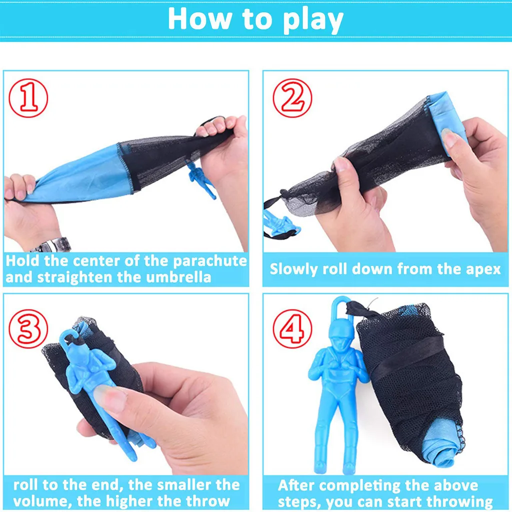 Простота в использовании: бросание игрушечного парашюта не запутывается, не запутывается, не нужны батарейки или сборка, просто бросьте его высоко и смотрите, как он летит, дети могут работать самостоятельно.