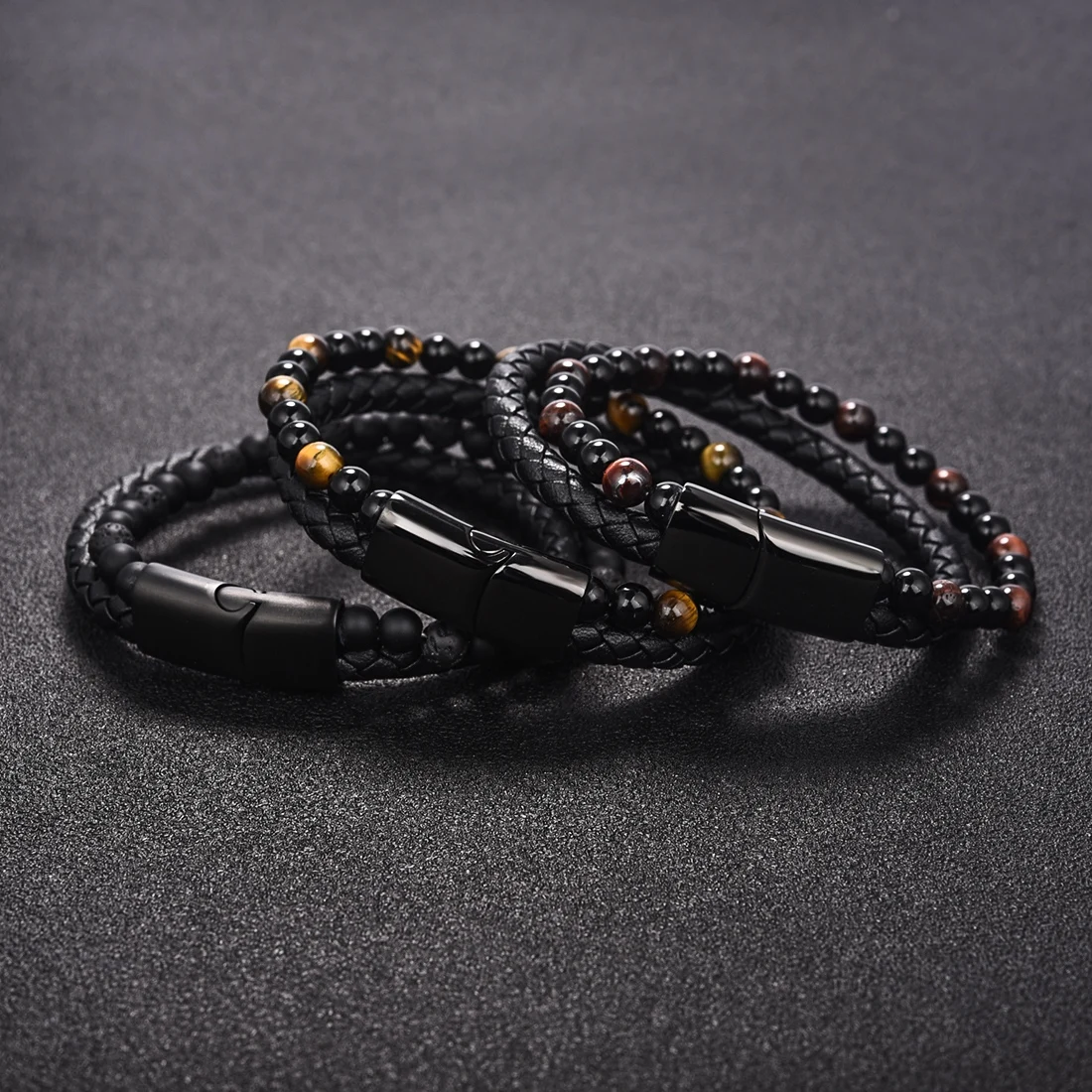 Браслет из бисера для мужчин из нержавеющей стали с магнитной застежкой