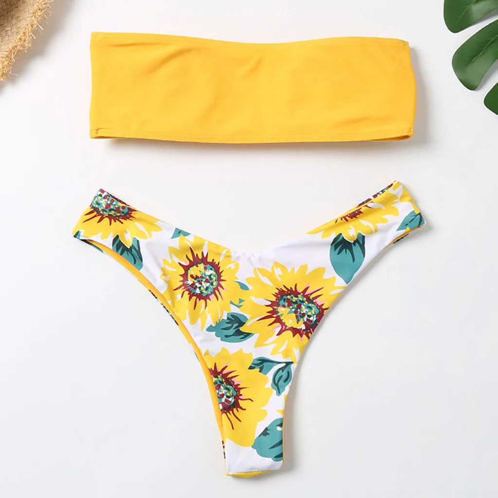 Сексуальный женский комплект бикини с цветочным принтом, купальный костюм с подкладкой, купальный костюм, пляжная одежда