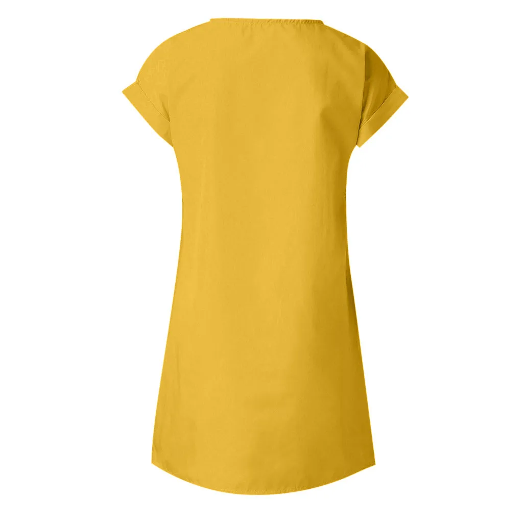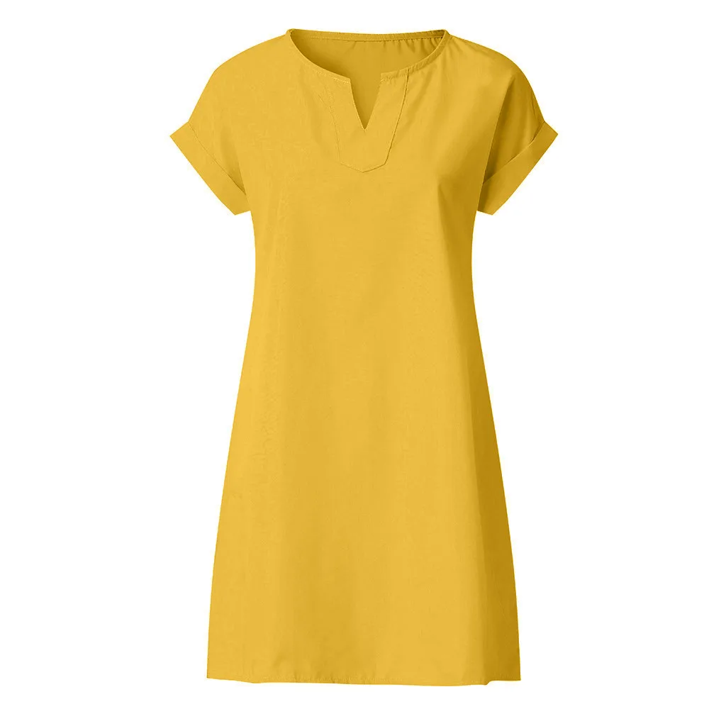 Женские повседневные однотонные платья, летние свободные однотонные платья с короткими рукавами