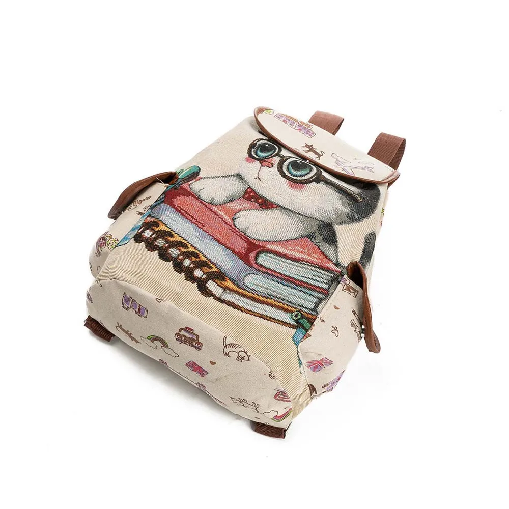 1x Женский милый холщовый рюкзак с принтом кота, сумка для покупок, дорожная сумка (Без розничной упаковки)
