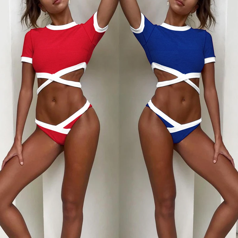 Змеиный принт бикини женский комплект 2 шт. с лямкой через шею низким вырезом на