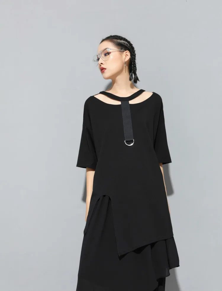 Модные корейские сексуальные готические футболки с открытыми плечами