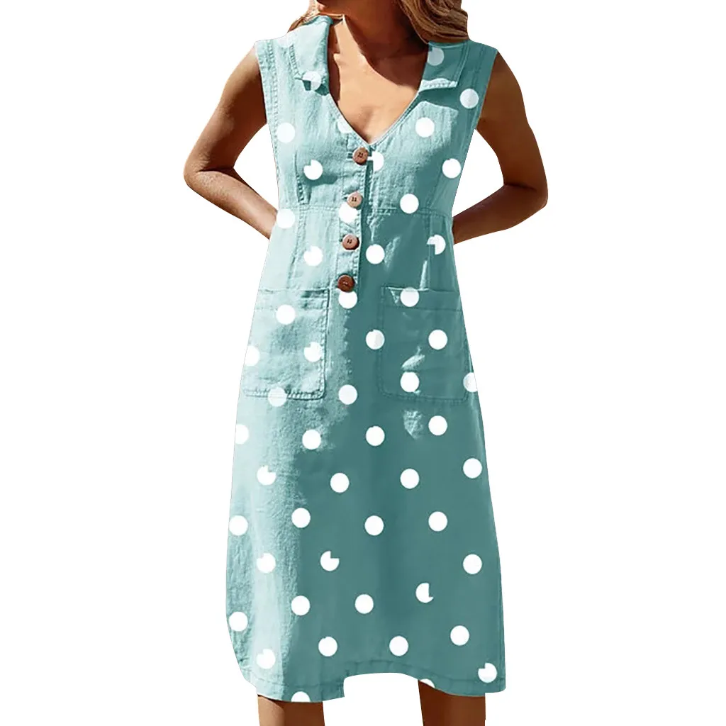 Женское элегантное богемное платье в горошек с отложным воротником и v-образным вырезом, платье с карманами на пуговицах