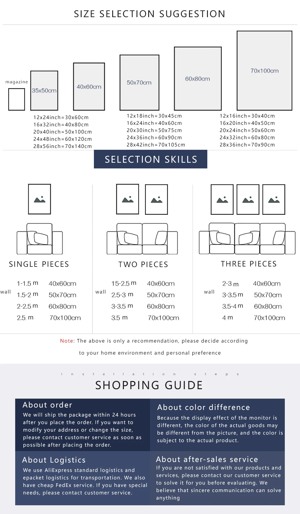 Что-то важное для наших клиентов: 1. Картина не ручная работа, это микро-спрей HD art. 2. Мы отправим посылка в течение 24 часов. 3. При отказе от товара мы забронируем 4,5-5 см, ширина белой каймой для клиентов 4. Наша картина не Наружная рамка, только холщовая свернутая. 5. Из-за разной конфигурации дисплея, разница в цвете между реальными продуктами и фотографиями будет тонкой. Окончательная приемка зависит от физических продуктов. 6. Если вам нужны индивидуальные размеры, пожалуйста, свяжитесь с нами. 7. Мы поддерживаем дропшиппинг.