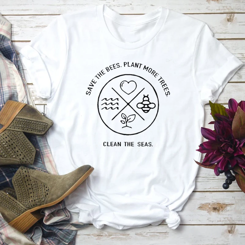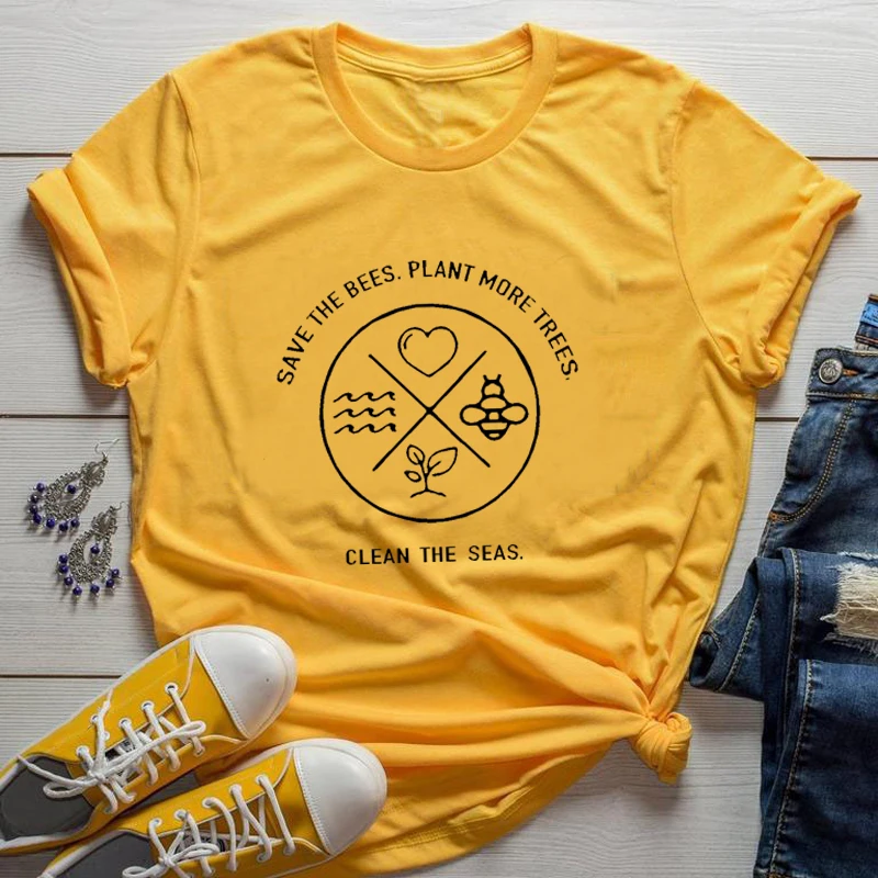 Женская футболка в стиле Харадзюку Save The Bees Plant More Trees, летняя модная футболка с принтом пчелы