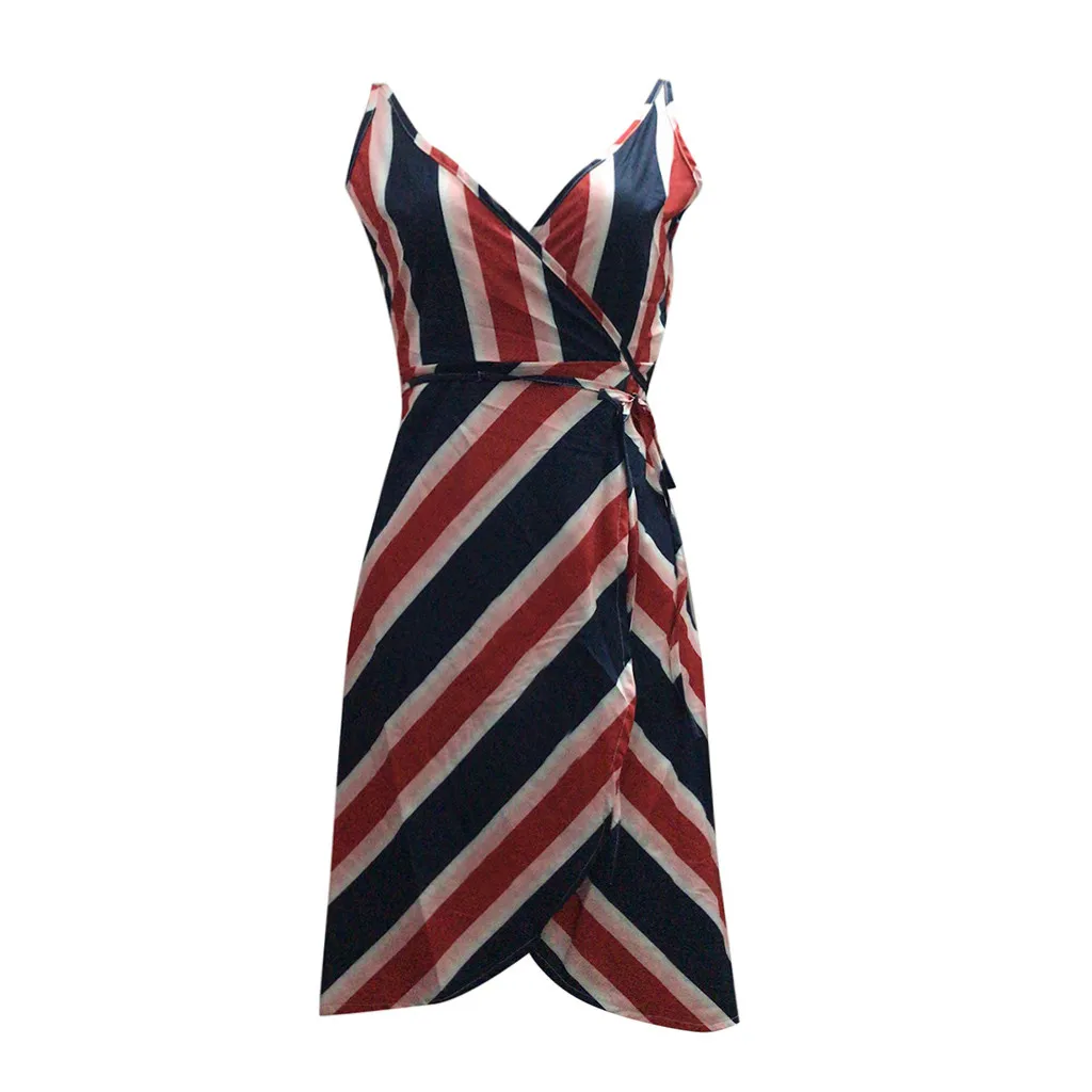 Модное женское летнее модное сексуальное пляжное платье в полоску с v-образным вырезом