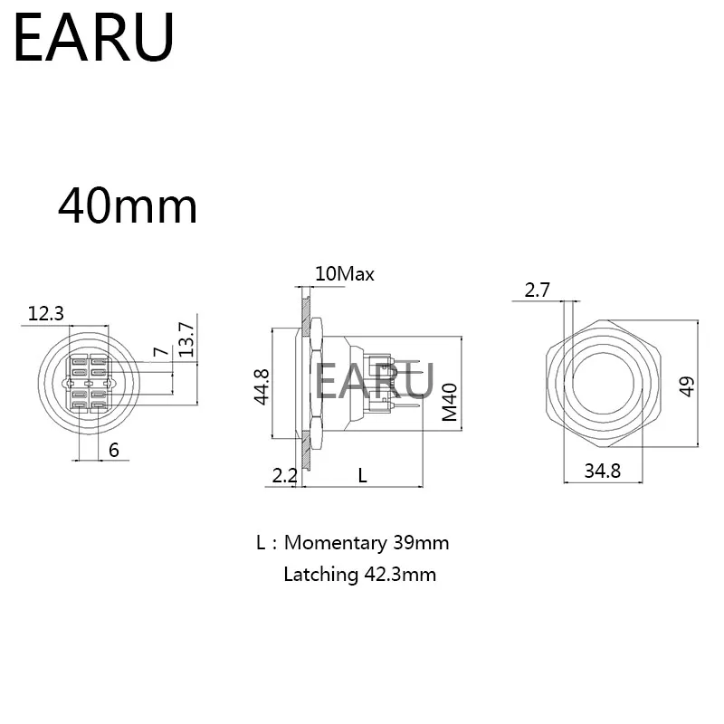 40 мм металлический кнопочный переключатель из нержавеющей стали плоское круглое мгновенное кольцо питания Mark 6 Pin автомобильные переключатели сброс фиксации