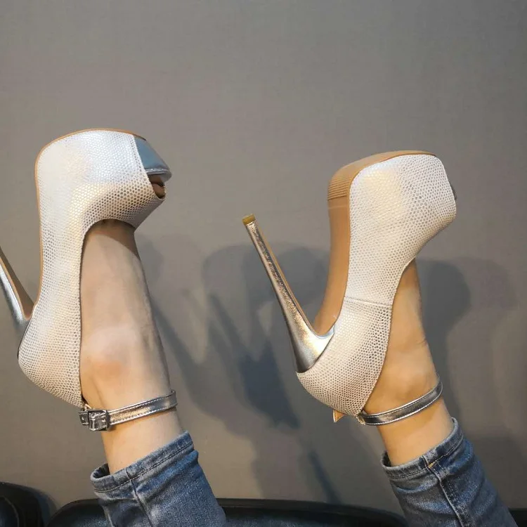 Оригинальные модные женские туфли-лодочки; Туфли-лодочки на высоком тонком каблуке с открытым носком и ремешком на щиколотке; Серебристые туфли; Женская обувь; Большие размеры 4-20