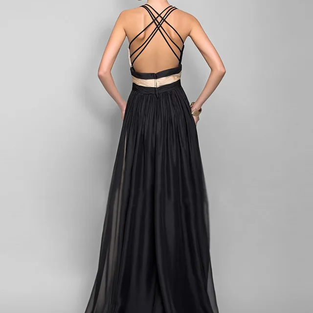 НЕТ: 190419084740 Вес: 360 грамм Размер: Шифоновое длинное вечернее платье, 2019 женское, контрастный цвет, глубокий v-образный вырез, открытая спина и разные размеры на выбор, пэчворк, однотонный, черный, продается PC