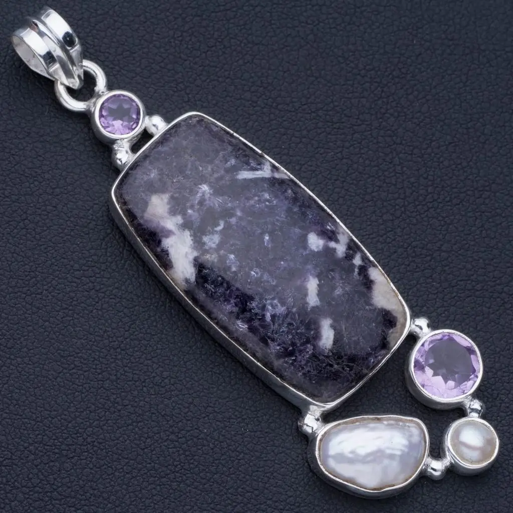 Природный чароит, аметист, речной жемчуг и Бива жемчуг в стиле панк 925 пробы серебряный кулон 2 3/4 " ; P0824