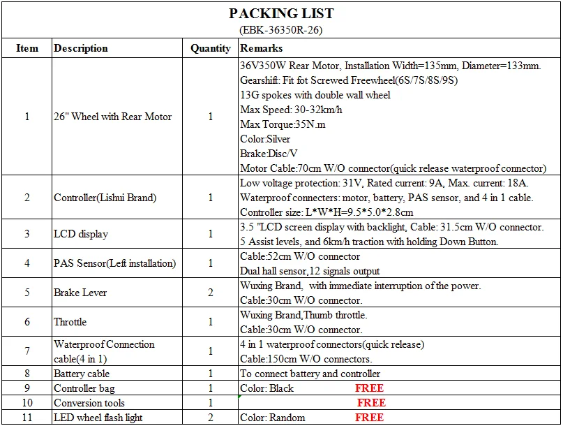 * Батарея (Li, свинцово-кислотная, NiMH батарея и т. д.) Номинальное напряжение 36 В Совместимо с этим мотором. * Датчик PAS не подходит для "HOLLOWTECH II'' и покупатель может купить для него датчик HOLLOWTECH II. И тормозной рычаг не подходит для гидравлического тормоза. Покупатель может купить для него гидравлический или механический тормозной датчик. * Важное Примечание: Пожалуйста, установите максимальную скорость вождения электровелосипеда в соответствии с локальными правилами дорожного движения, чтобы предотвратить риск безопасности, вызванный чрезмерной скоростью! * Свяжитесь с нами, чтобы получить инструкции по установке видео, если вам нужно.