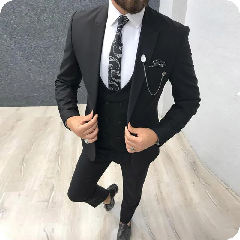 Мужские костюмы черного цвета на заказ, мужские костюмы для свадьбы, смокинги для жениха, бархатный жилет с отворотами, пальто, брюки, блейзер Terno Masculino