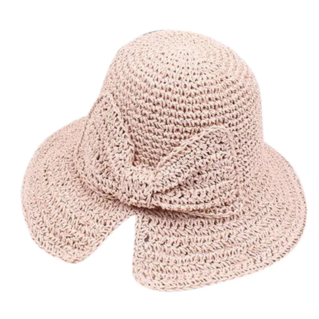 1х женская соломенная шляпа Bowknot в полоску Floppy Складная пляжная шляпа