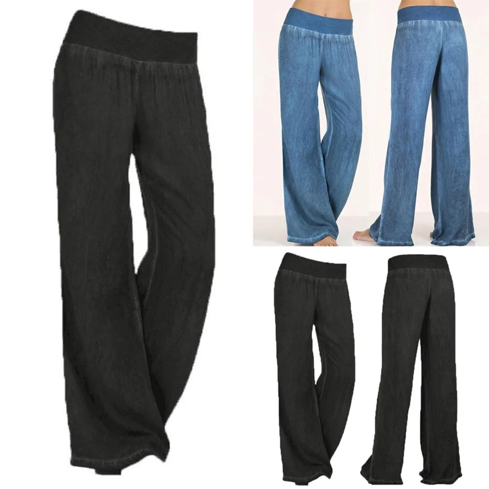 Женские свободные брюки с высокой талией однотонные Желтые Спортивные Брюки