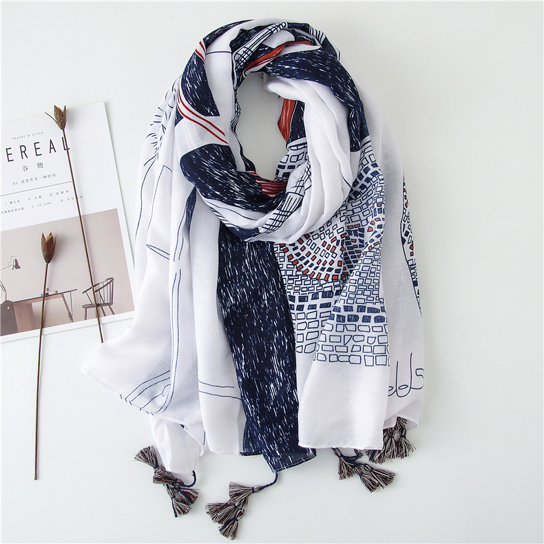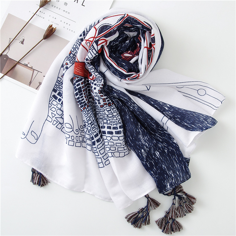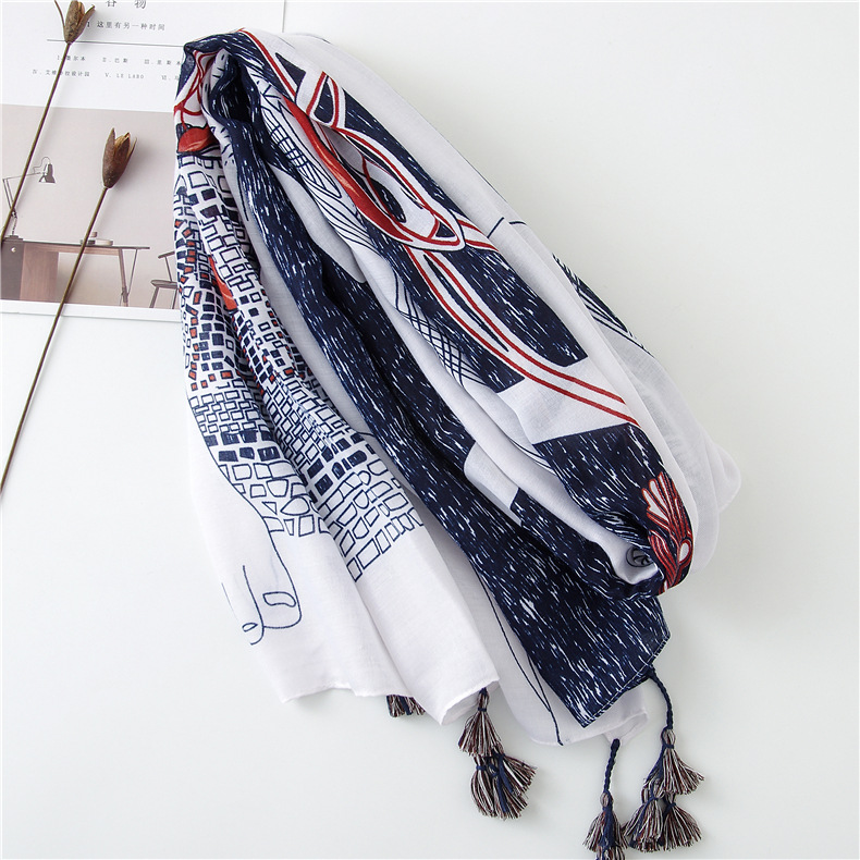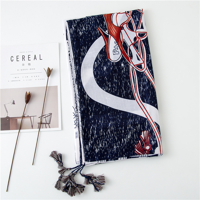 Модная синяя шаль из вискозы на высоком каблуке с кисточками, шарф, хлопковый шарф, палантин из пашмины, мусульманский хиджаб