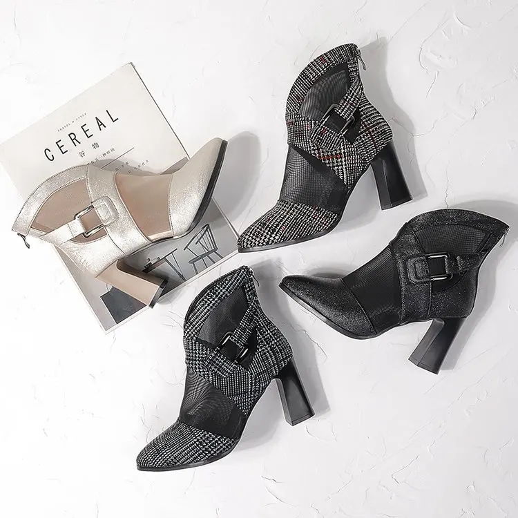 2018 Модные женские сандалии на каблуках шпильках с декоративной молнией спереди