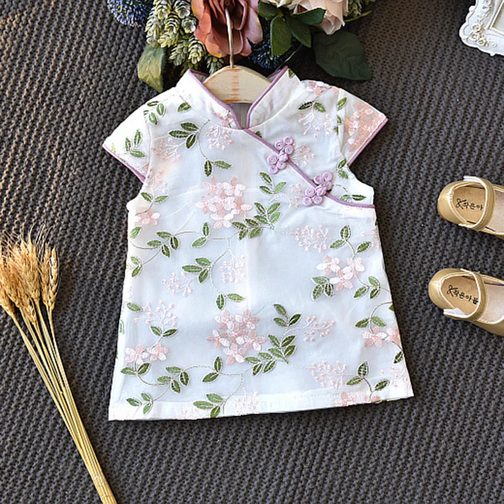 Одежда для маленьких девочек; Одежда с вышивкой; Рубашка Чонсам; Топ + юбка; 1 комплект