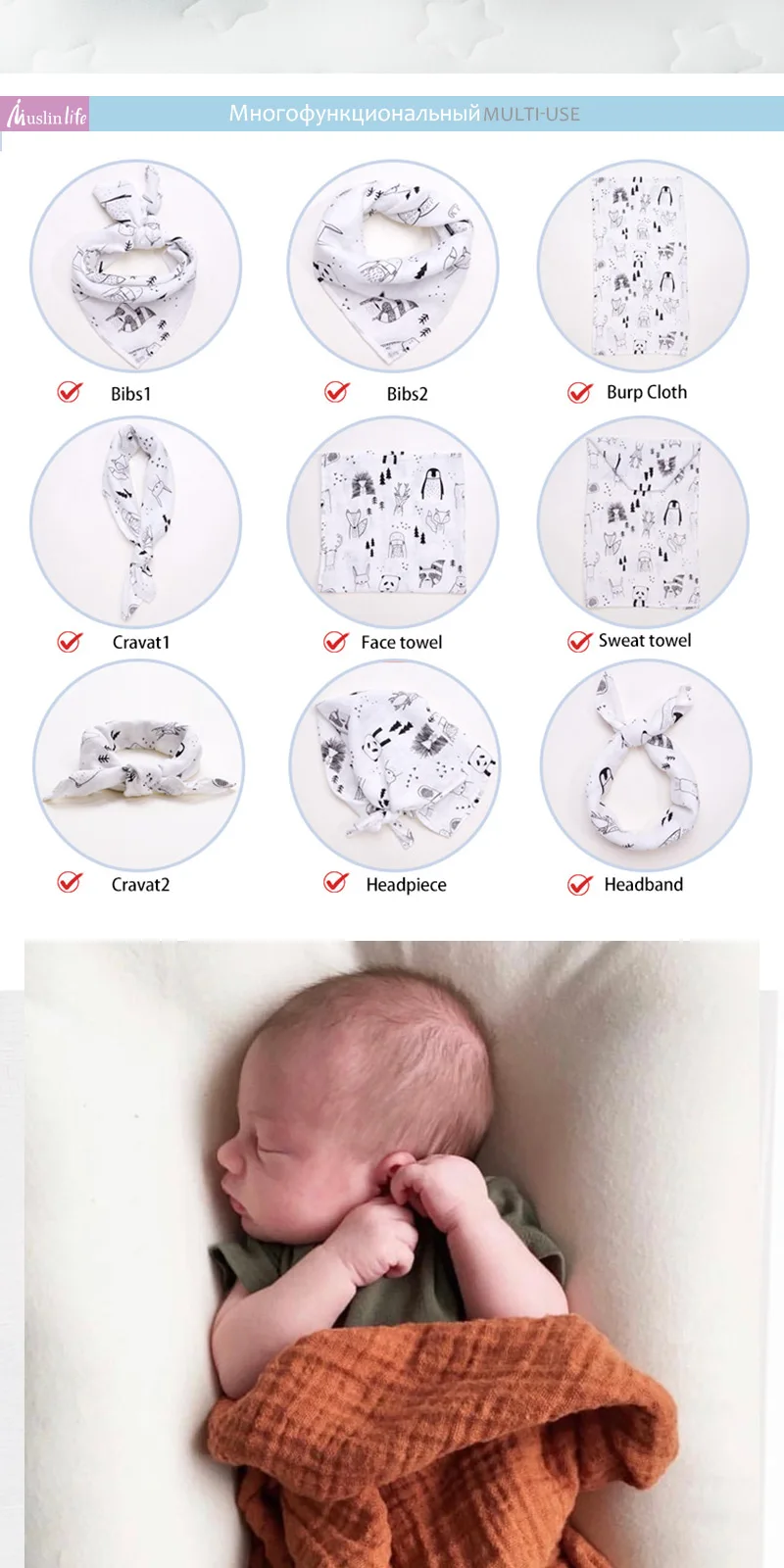 Высококачественное бамбуковое хлопковое детское одеяло для новорожденных мягкое детское муслиновое Пеленальное обертывание универсальные Слюнявчики полотенце нагрудники-шарфы детские вещи Размер: 60*60 см