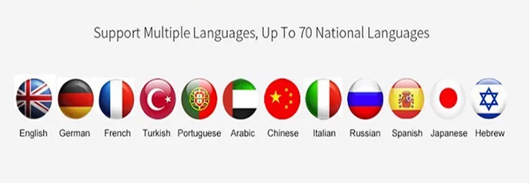Русский, английский, испанский, итальянский, французский, немецкий, китайский, эстонский, польский, филиппинский, финский, корейский, голландский, хорватский, латышский, литовский, румынский, норвежский, португальский, японский, шведский, тайский, турецкий, украинский, венгерский...