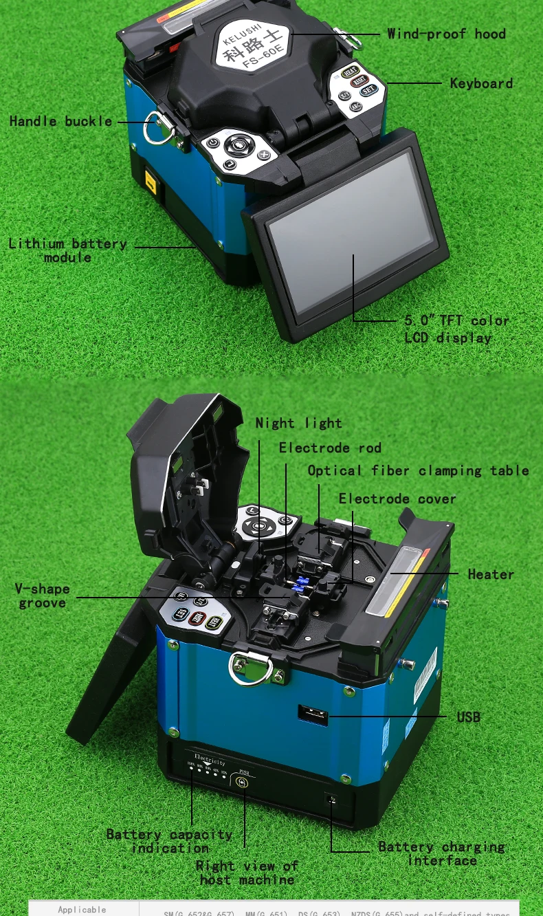 KELUSHI FS-60E FTTH Автоматического оптического волокна высокой точности сварочный аппарат машина сварки штучными электродами сплайсинга машины синий