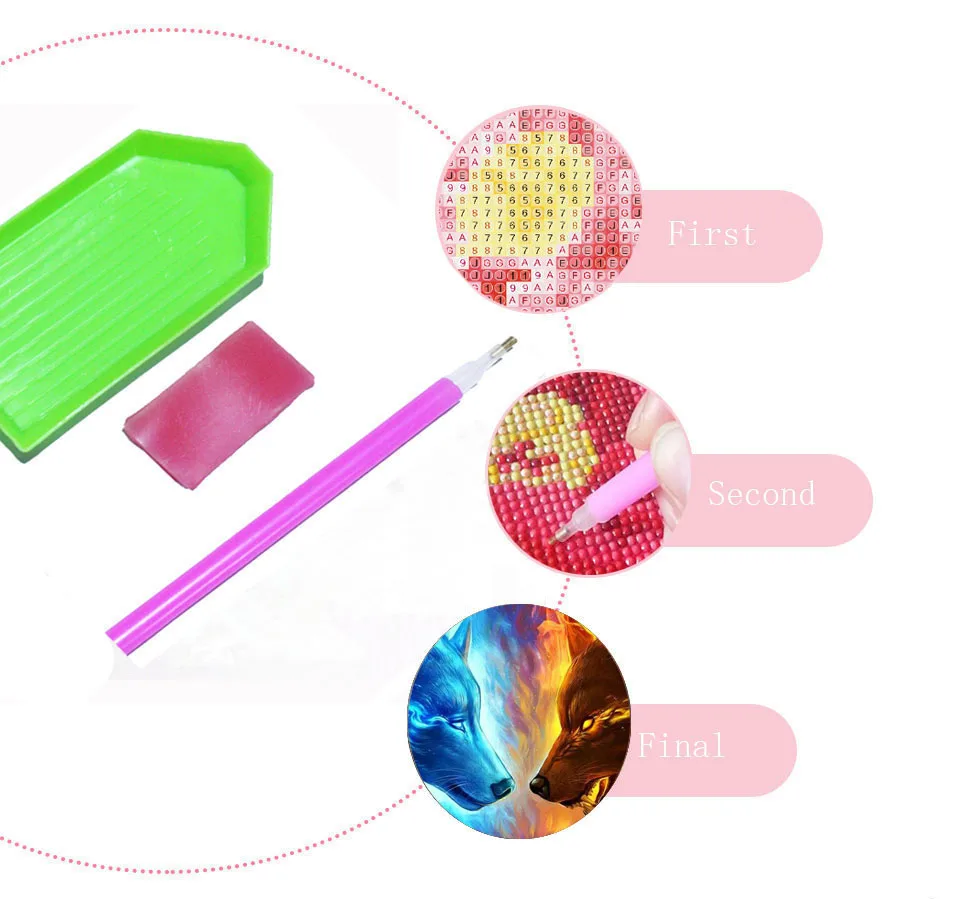 Посылка включает в себя: 1 х предварительно напечатанная картина холст, 1 комплект алмазной огранки Красочные Стразы бусины, 1 х лоток, 1 х липкая ручка, 1 х Алмазный гель;